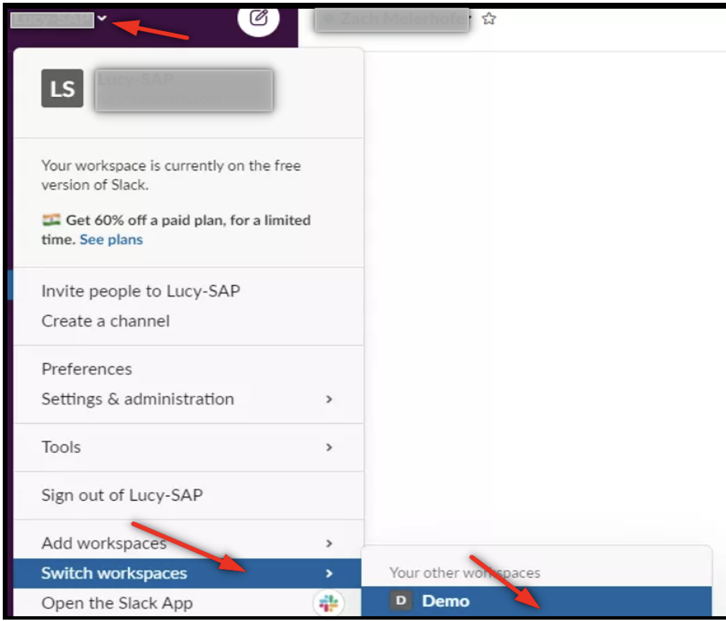 If you want to switch to a different workspace, you can do so in the workspace menu of Slack Desktop.