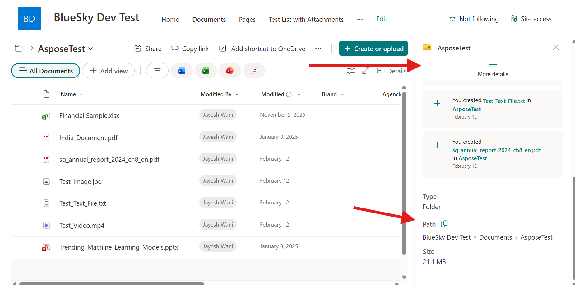 #2 is Folder URL : /Shared%20Documents/AsposeTest