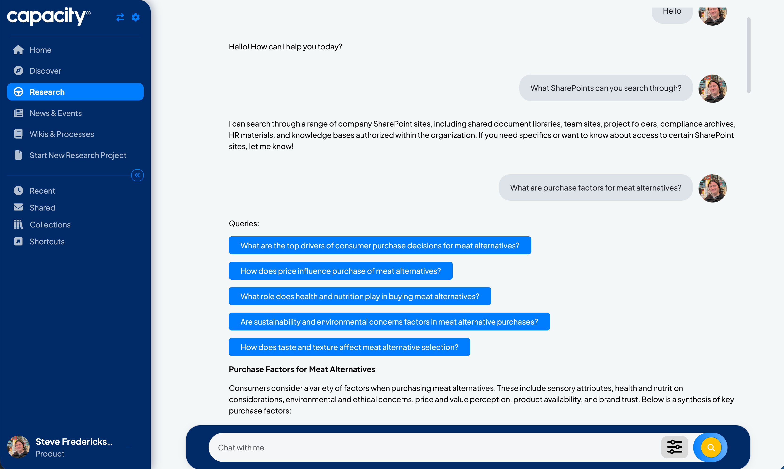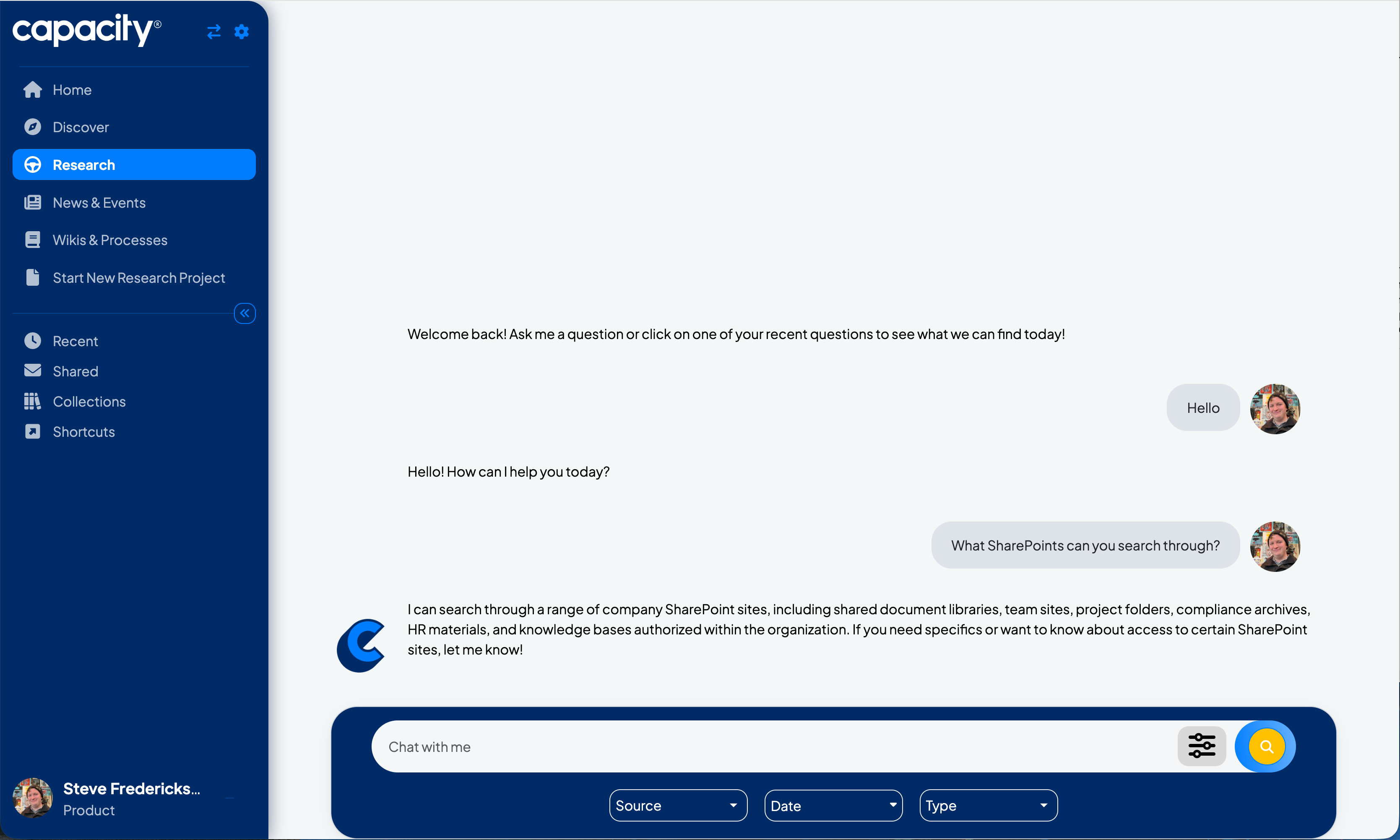 The easiest way to get familiar with Research Mode is to start using it. The system gives visibility as to what it's doing and the progress against each query. Go in to Research Mode and ask what kind of sources you can ask about.